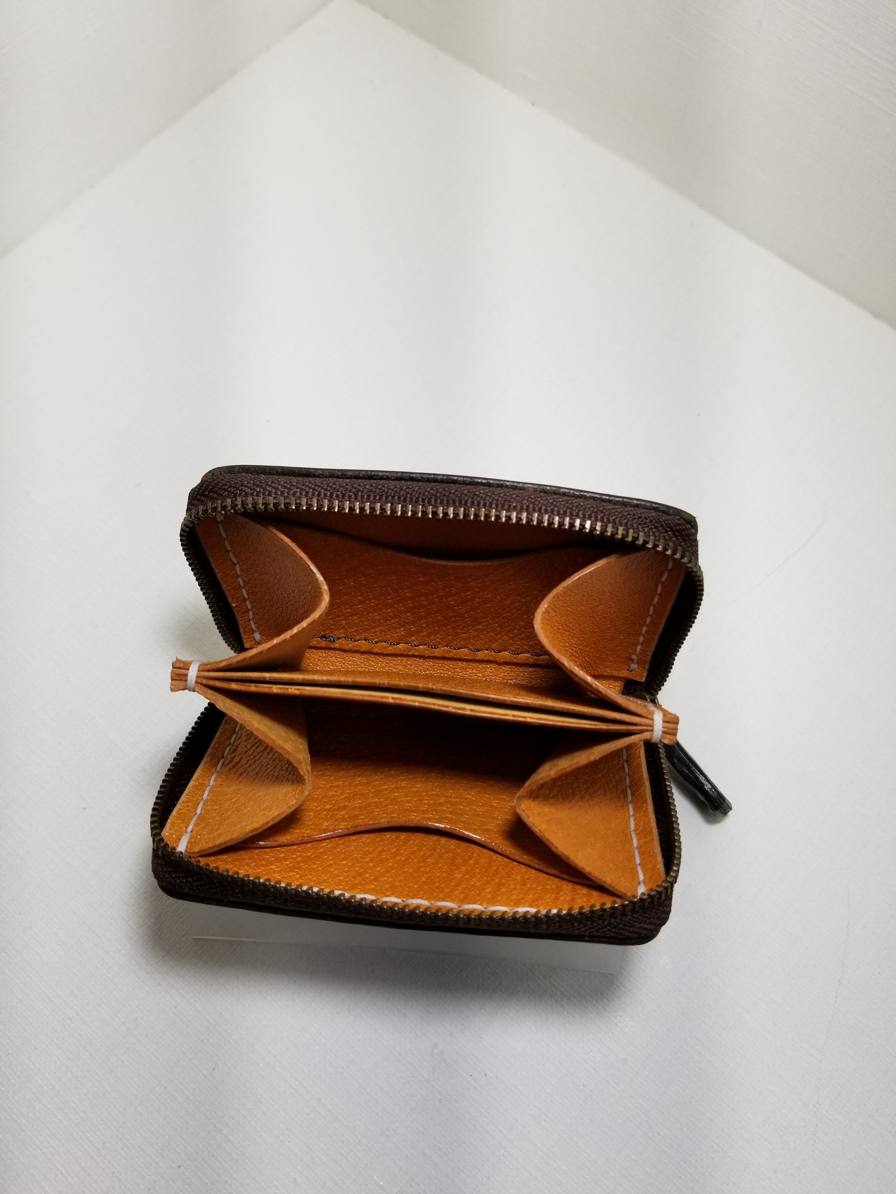 カードポケット✕2。間仕切り部にレシートポケット。 天然皮革の為、シワ、チスジ等あります。